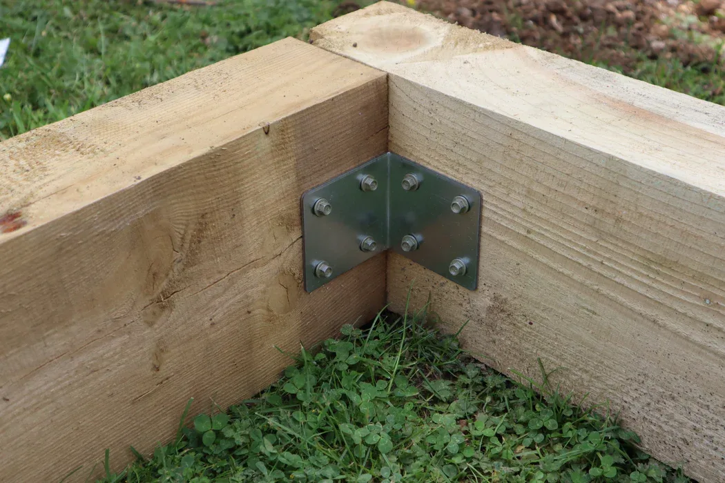 Sleeper Angle Bracket for use on raised beds, pathway edges, retaining walls and other wooden sleepers.